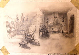 Quelque croquis et recherches de colorations pour le conte de Barbe Bleue. / At the moment I'm working on the sets of Bluebeard. :)